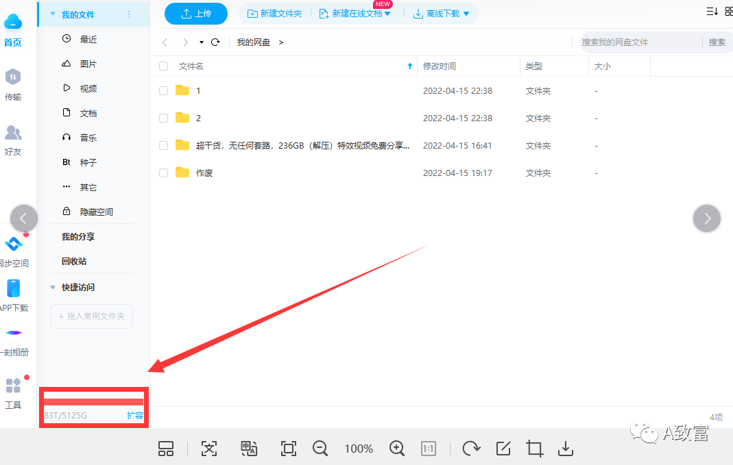 2.临时性存文件:一次性存入好多T的文件,比如学习资料、工作文件、影视资源等。